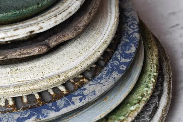 A tower of imperfectly perfect plates—glazed with memory, chipped with love, and fired with patience.